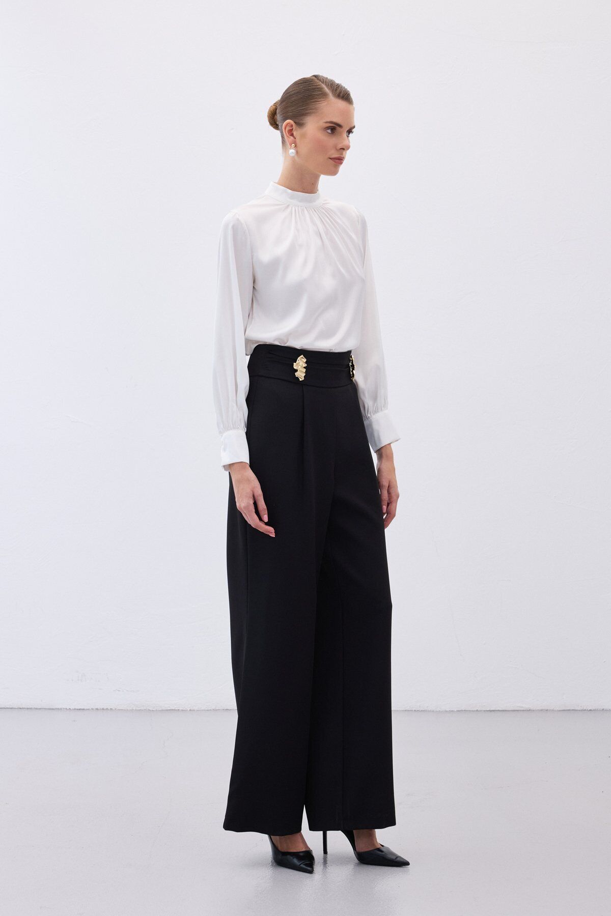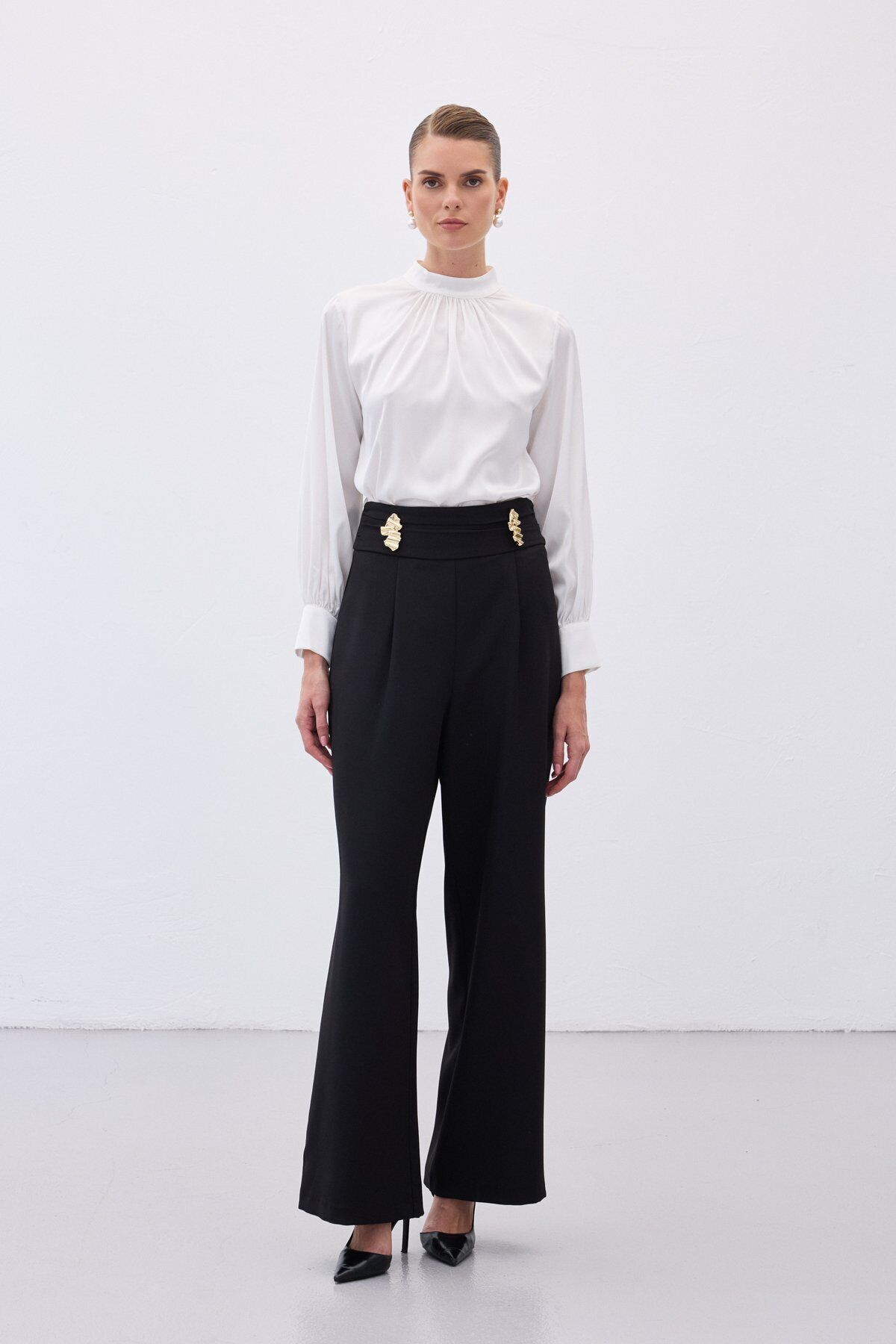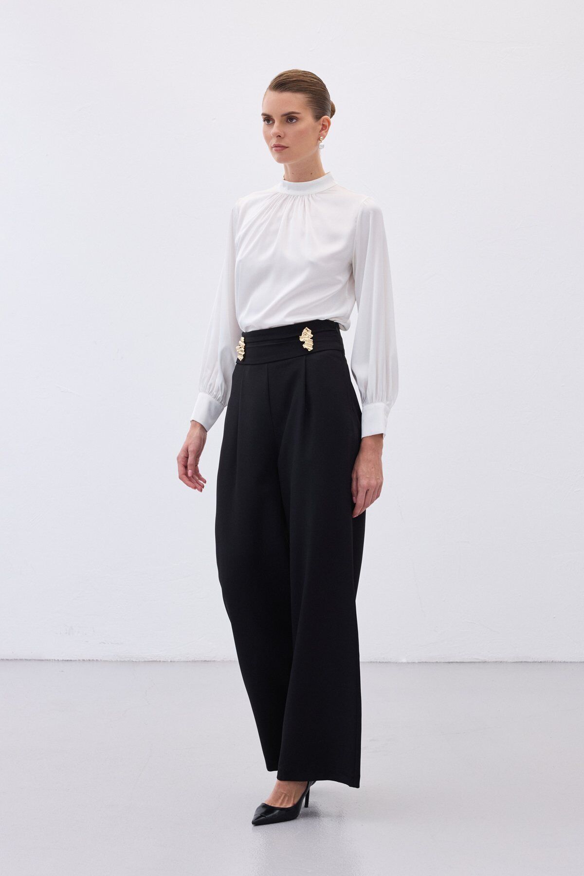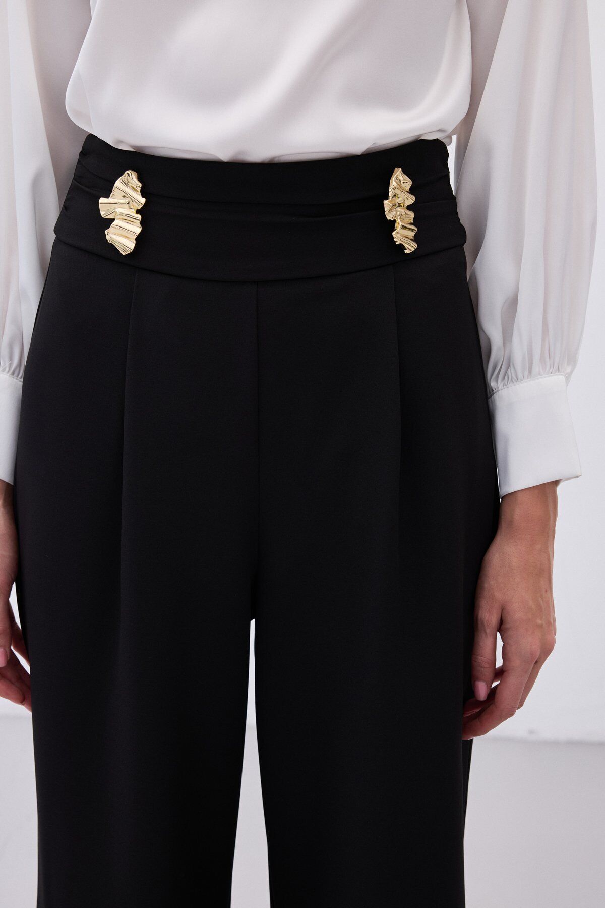 Bel Aksesuarlı Pantolon - Siyah