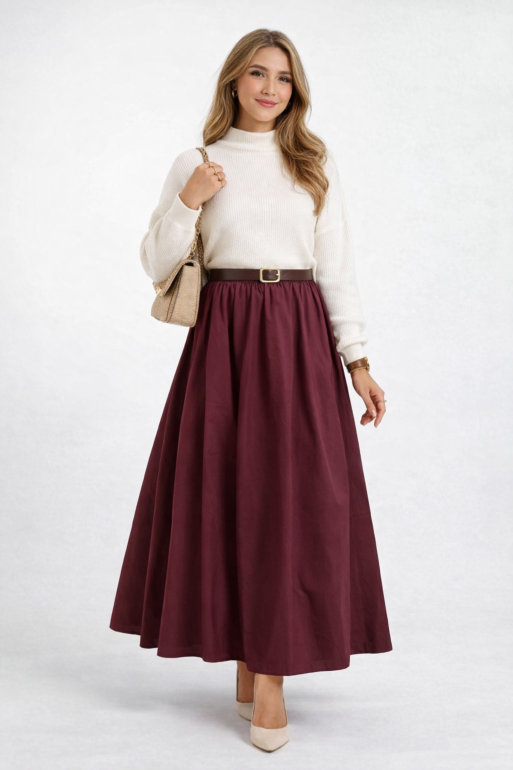 Günlük ve şık kombinler için tasarlanmış uzun etek