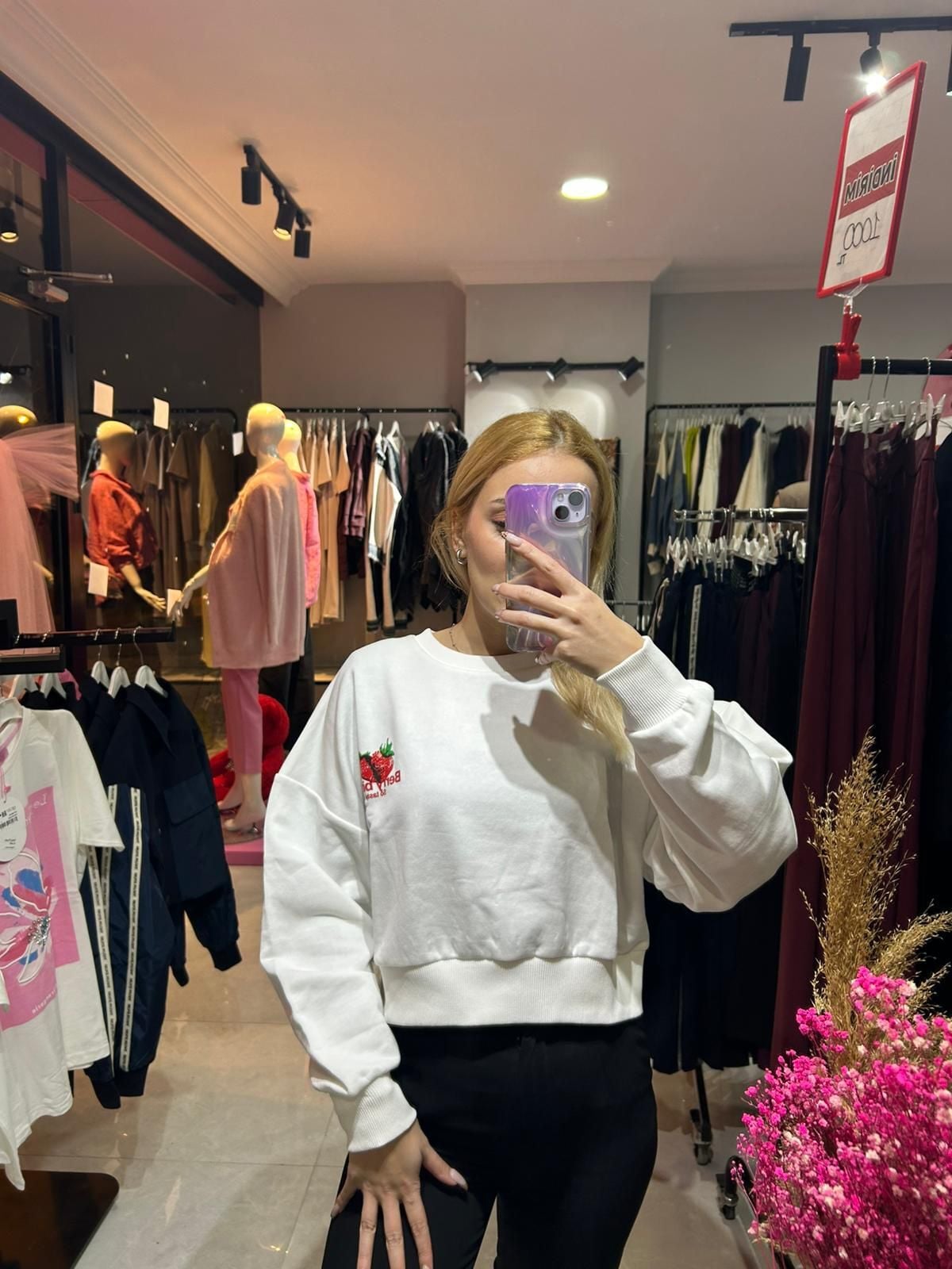 Günlük kullanım için tasarlanmış oversize kalıba sahip sweatshirt modelidir. Yumuşak dokulu sweatshirt kumaşı sayesinde gün boyu rahat kullanım sağlar. Göğüs kısmında yer alan çilek nakış detayı ürüne sade ve şık bir görünüm kazandırır. Düşük omuz kesimi ve rahat kalıbı sayesinde spor ve günlük kombinlerde kolaylıkla tercih edilebilir. Ekru rengi farklı parçalarla kolay kombinlenebilir ve her mevsim kullanılabilecek zamansız bir parçadır.