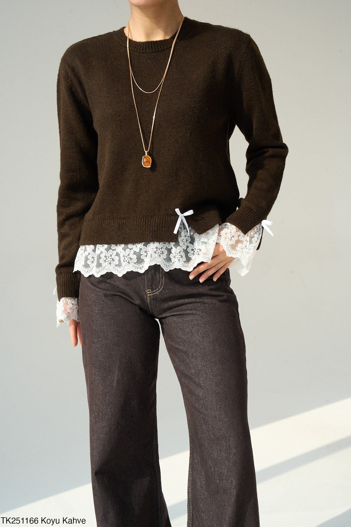 Etek ucunda dantel detay
