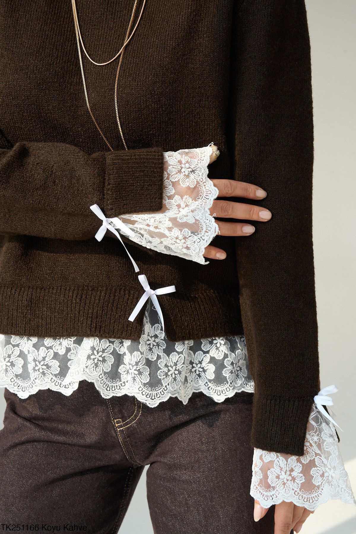 Kol uçlarında dantel bitiş