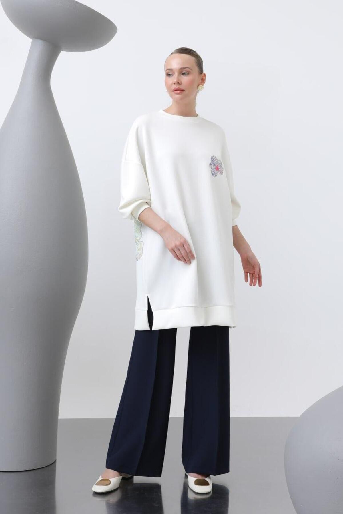 Kadın Aplik Detay Modal Tunik 10641 ECRU